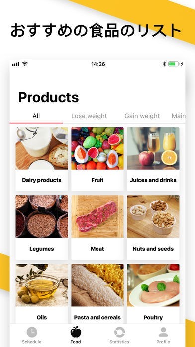App Storeより引用あなたの血液型、性別や年齢を考慮した健康的な食事プログラムです。