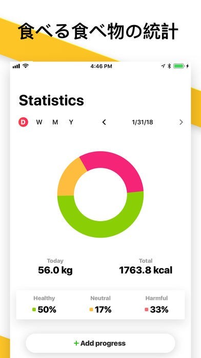 - 統計はあなたの体にいい食事・悪い食事・平均食事の合計量を見せる