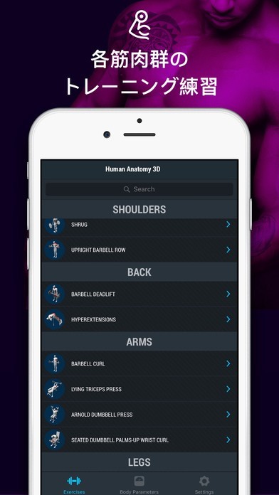 「人体解剖3D - 筋トレ」アプリの特徴: