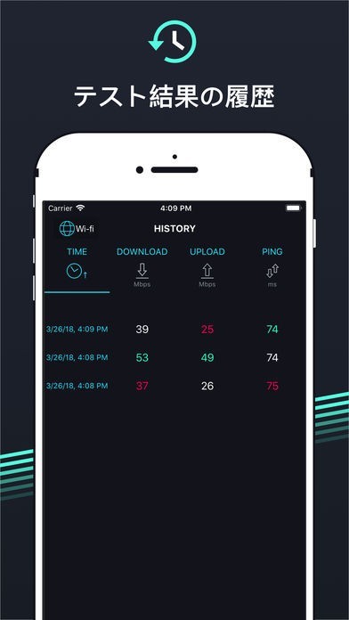アプリで計測したスピード結果は履歴に残すことができます。過去に計測したスピード結果を振り返りましょう。いつどこで行った接続が速かったのかを比べることができます。