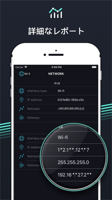 アプリには、通信速度の詳細を表示させることができます。通信機器、IPアドレスなどの詳しい情報をチェックすることができます。画面拡大機能もあるので、確実にレポートを見ることができます。