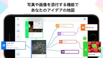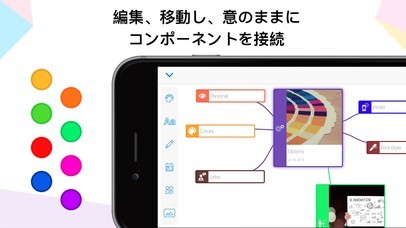 App Storeより引用相互接続は便利なマインドマップを形成することで、ブロック・スキームであなたのアイデアを整理します。アイデアやキーの詳細に焦点を当て、あなたのブレーンストーミングプロセスを視覚的に表現してください。
