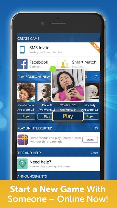 *Play Words With Friends without third party ads between moves if you previously purchased Words With Friends Pro on iOS or any other mobile device. Be sure to login with Facebook or the email account you used to make the previous purchase to continue to play without third party ads between moves. Games played in App Store for iMessage are separate from games on your iPhone, iPad, Computer, and Apple Watch and will be separate games from those on other devices.