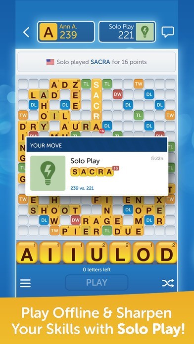 Words With Friends is the fun, free word game that lets you connect with friends and family while expanding your vocabulary and sharpening your wit. Test your brain power and spell your way to victory.