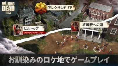 アプリ「ウォーキング・デッド:ノーマンズ・ランド」では、全米をはじめ世界じゅうで大人気の連続ドラマ「ウォーキング・デッド」をもとに作られた、襲ってくるゾンビを倒し、逃げながらシナリオクリアを目指すゾンビゲームを楽しむことができます。ドラマに登場するキャラクターが続々出てくるのはもちろん、ドラマで見たことがある風景の中でバトルを出来るのも魅力です。