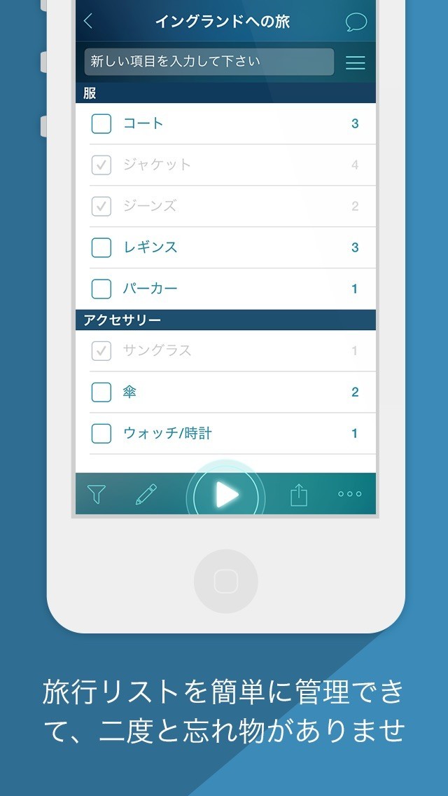 .リストや品物項目は無限に追加することができますので、あなたは旅行のカテゴリを気楽に管理することができます。
