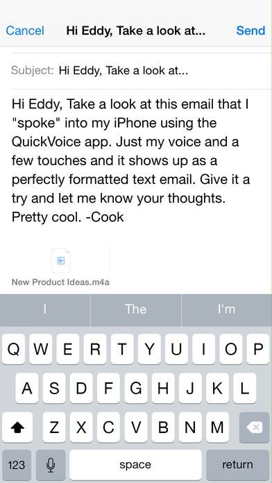 テキストメッセージを作成している時間が無い時や、手早くメッセージを送信したい時にも活躍してくれます。話しかけるだけでボイスメッセージの録音ができる他、そのままEメールに添付して送信も行えます。