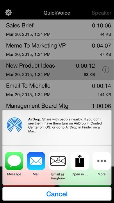 素早くメールを送りたい時にも活躍!話しかけるだけで20MBまでのボイスメッセージを録音可能!
