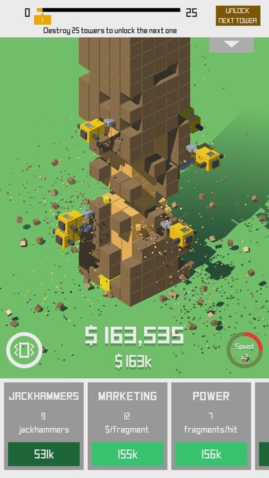 ジャックハンマーの軍隊を作ってアップグレードし、可能な限り多くのタワーを破壊しよう!