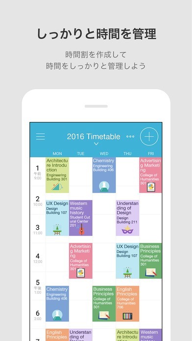学生や主婦には欠かせない時間割機能にも対応しています。