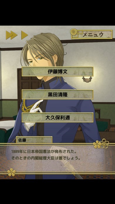 また、時代背景を題材にしたクイズのミニゲームもあり、物語に影響します。