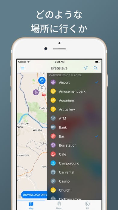 100%OFFLINE:この観光ガイドはインターネットに接続する必要はありません。余分な料金を払うことなくあなたの訪問をお楽しみください!