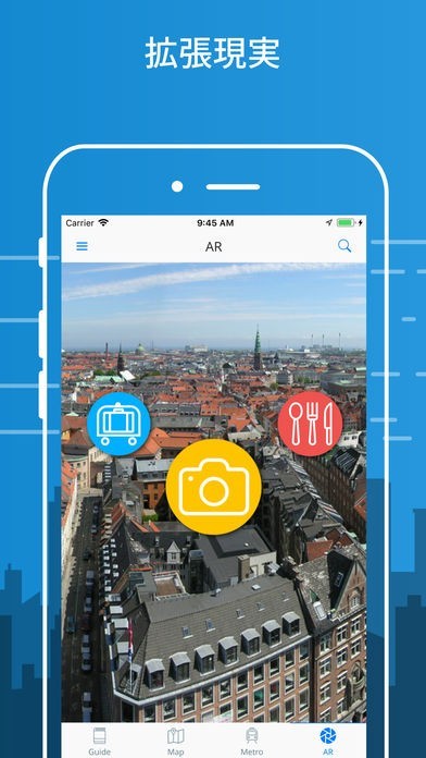 AR機能搭載なので、カメラを使うことで360度何があるかを把握することができます。全ての観光ガイド機能がオフラインで使えるので、インターネットを接続する必要もありません。