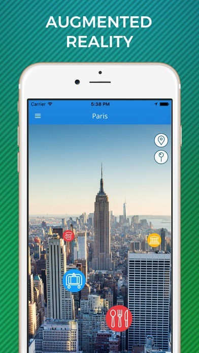 ドバイ オフラインマップと旅行ガイドで表示される地図は回転やズームが可能で、オフラインの為スムーズな操作が可能となっています。また、カメラに写った風景にレストランのアイコンやビルの名前などを表示させることもできます
