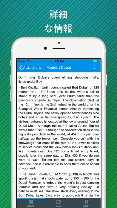 地図などドバイ観光をよりスムーズにできる機能を搭載