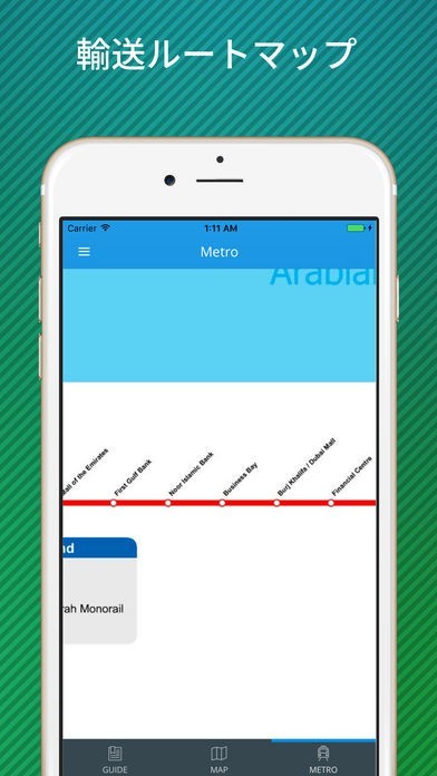 このアプリでは、ドバイ国内を走っている、メトロと呼ばれる地下鉄の路線図もみることができます。ドバイの基本的な移動手段になると思われるので路線図を元に移動してみましょう。