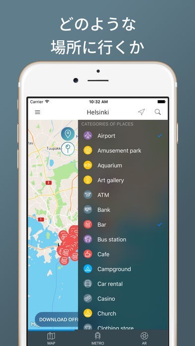 100%OFFLINE:この観光ガイドはインターネットに接続する必要はありません。余分な料金を払うことなくあなたの訪問をお楽しみください!