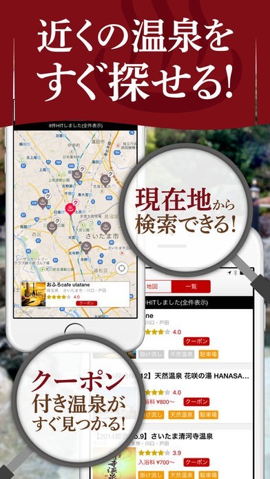 温泉検索 クーポンのある日帰り温泉を簡単検索のスクリーンショット