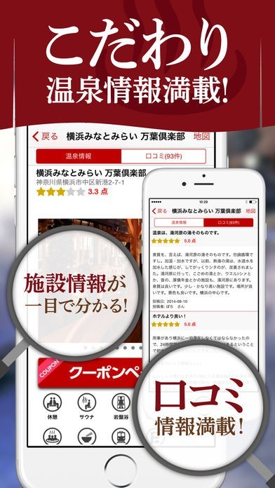 「温泉検索 クーポンのある日帰り温泉を簡単検索」スペック・仕様