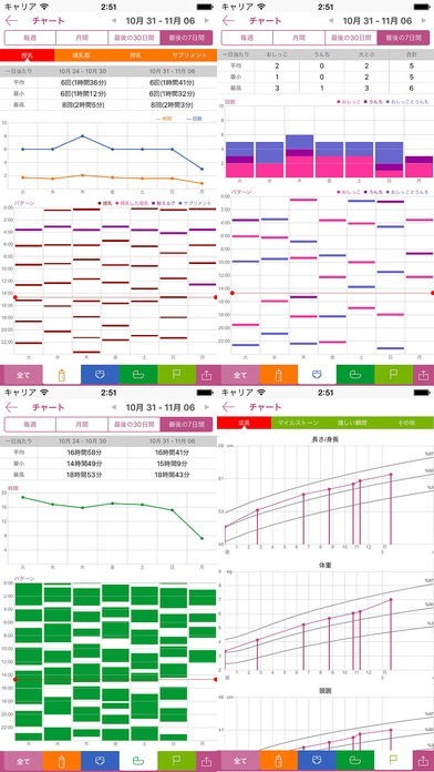 赤ちゃんが生まれてから、一時も離れずにお世話が始まります。 毎日の授乳やおむつ替え、また睡眠の時間や赤ちゃんのちょっとした様子など、アプリに入力すればあっという間に育児日記に早変わり。 いつ頃、搾乳したのか、離乳食を始めたのか、うんちの様子はどう変わってきたのか、細かに記録が残せます。 ノートに育児日記をつける方も多いかと思いますが、こちらのアプリを使用すれば入力したデータをグラフ化してくれて、赤ちゃんの変化が一目で理解できます。 赤ちゃんの日々の成長を残すのにもってこいのアプリです。 複数の機器間で同期できるので、家族やシッターさんとも情報を共有でき、育児の心強い味方になってくれます。