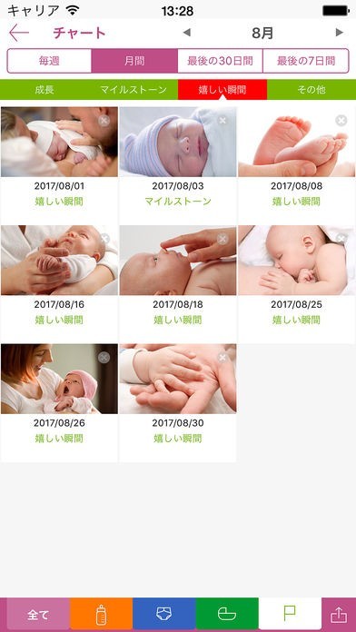 赤ちゃんの成長記録を様々な角度から細かに残せます