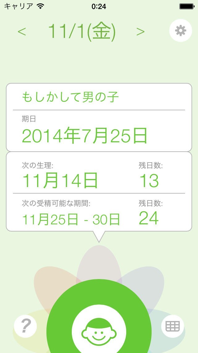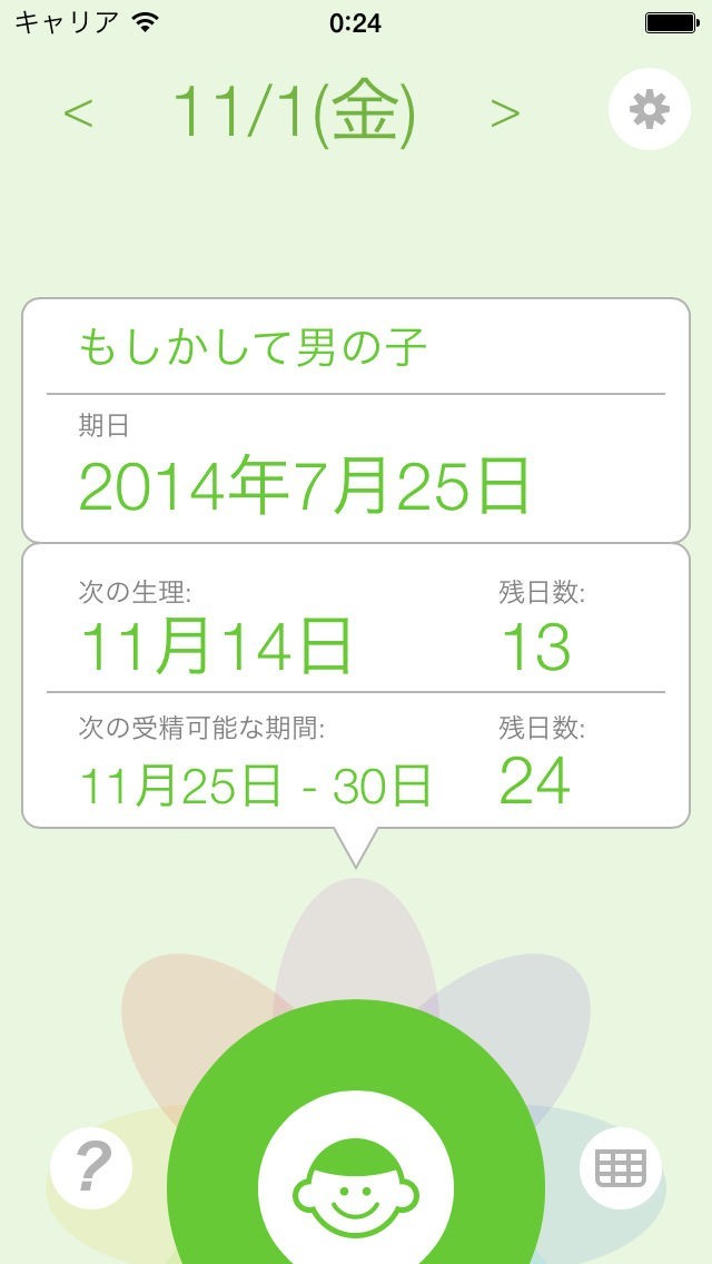 排卵と妊娠カレンダー(受精計算機、性別予測、生理追跡)のスクリーンショット