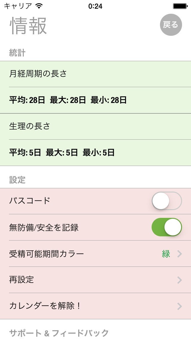 「排卵と妊娠カレンダー(受精計算機、性別予測、生理追跡)」スペック・仕様