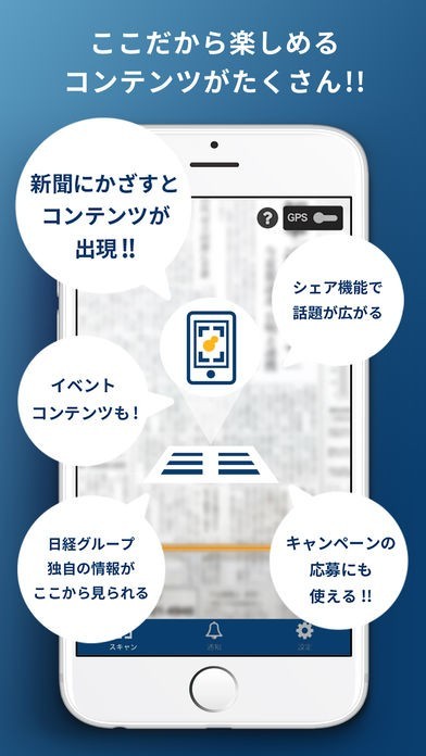 このアプリでは、日経新聞掲載記事につけられたマーカーにスマホをかざすことでさらに詳細な情報を読み取れます。ARアプリらしく、スマホを通して紙面上に表示された物体を動かしたりすることも可能で、視覚的にも楽しいアプリになっています。