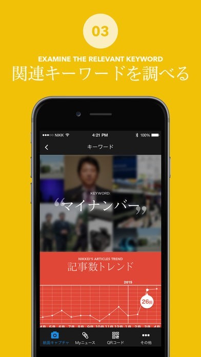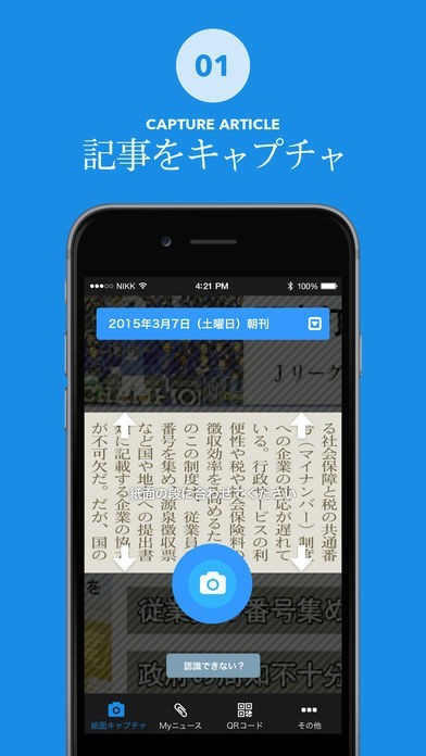 何かを調べたいと思った時に文章を入力するのは少し面倒です。そこで、本アプリでは記事の気になる部分をスマホカメラで撮影することによってデータを取り込むことができます。