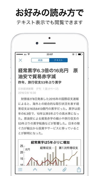 日本経済新聞 紙面ビューアーを使うことによってこれまでは、紙面を直接読むために字が小さいため読みにくいというようなことがあり、絶対老眼鏡が必要になってくるというものでしたが、アプリを利用することによって簡単に拡大することもでき、老眼鏡も不要で簡単に経済ニュースを把握することができます。設定で大きい文字ニュースも設定することができるので、便利に利用することができます。一部の機能は無料ですので気になる方がいらっしゃるのであれば試してみてください。