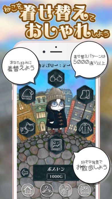 ねこが歩くと、コインを拾います。コインを使用して、ねこの着せ替えアイテムを買う事ができます。