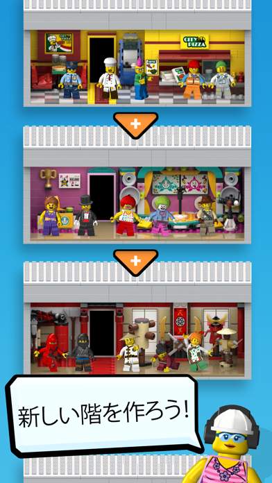 App Storeより引用世界に1つだけのレゴ® タワーを作って遊ぼう!ミニフィギュアが住んだり、働いたり、遊んだりできる、いろいろなアパートやビジネスを建設してね。友達のタワーを訪問したり、アイテムをトレードしたりして建設を手伝ってあげよう。楽しいミニフィギュアパーツを集めたり、秘密キャラクターを発見したりできるよ。夢のレゴ® タワーを作って、空に届くような高さにしよう!