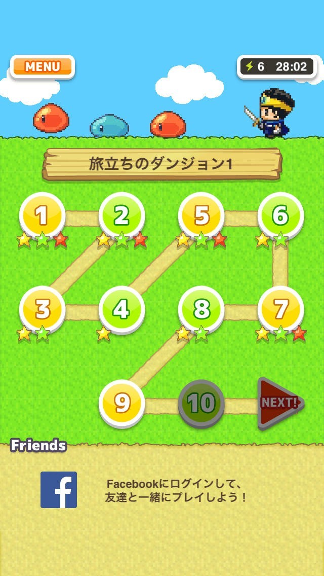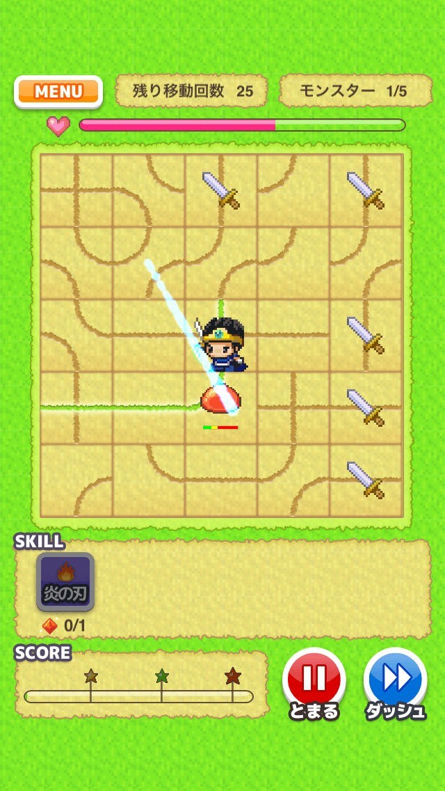パネルをうまく動かして勇者の道を作ろう!操作簡単なアクションパズルゲーム。 ステージごとに、パネルをうまく動かしながら、途中で遭遇する敵を倒して進んでいきます。簡単操作ながら、多彩な攻撃を仕掛けることができるのがポイント。さらにシンプルで見やすい画面なので、難しいゲームは苦手、という方にもオススメです。 各ステージのスコアによって3段階の星マークの評価がつく、やりこみ要素も。 ドット絵のキャラクターが懐かしく可愛いゲームです。