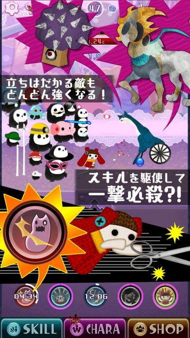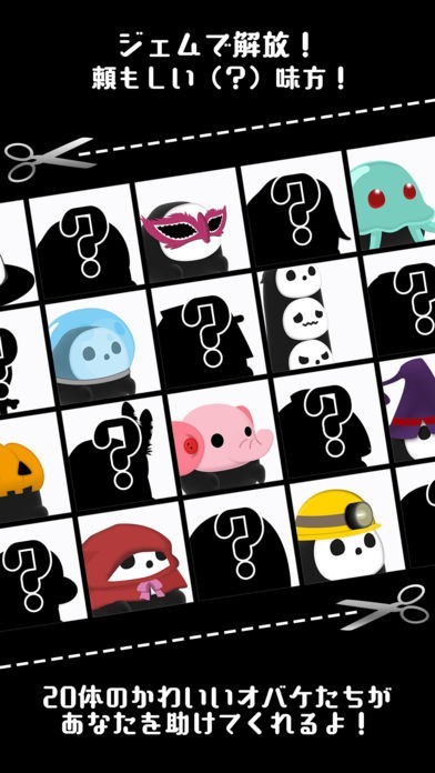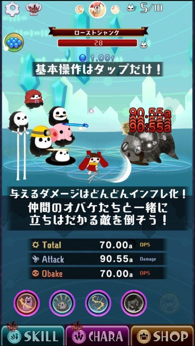 画面に現れる敵をタップで倒し、ジェムを集め、仲間のオバケを増やし、敵を倒してジェムを集め、スキルを解放して、もっともっと敵を倒しましょう!