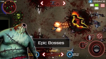 Zombies swarm the screen, exploding into bits under your hail of bullets. Each of the 17 unique zombie types have special attacks and behavior, and they can evolve - manifesting terrifying new powers as you progress through the game. And just when you think you've beat them all, savage boss zombies hunt you down, puking out acid worms or storming after you in rage mode. Learn their strengths and weaknesses as you lead the action across 7 story-driven maps with varying victory conditions.