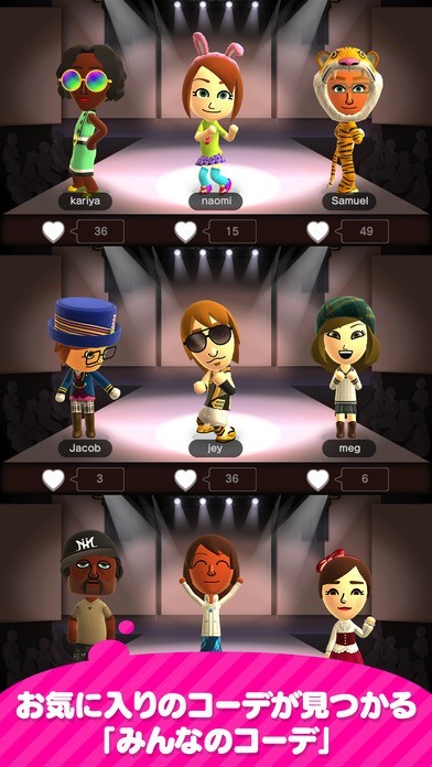 アバターの衣装を自由に着せ替えする事が可能です。また「みんなのコーデ」を通して全国のユーザーやフレンドの洋服をチェック出来るのも利点でしょう。カジュアル服やコスプレ等の様々な衣装を購入していけます。