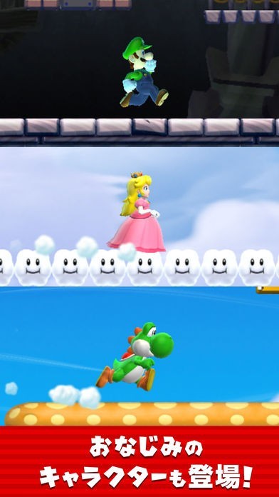 あのマリオがスマホで手軽に楽しめます。操作はタップするだけなので誰でも手軽に楽しめます。