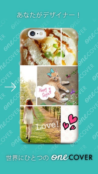 完成した画像で、世界にたったひとつのオリジナルiPhoneケースをオーダーできるアプリです。