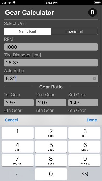 車は6未満のギアを持っている場合は、単に該当するギア比を入力します。