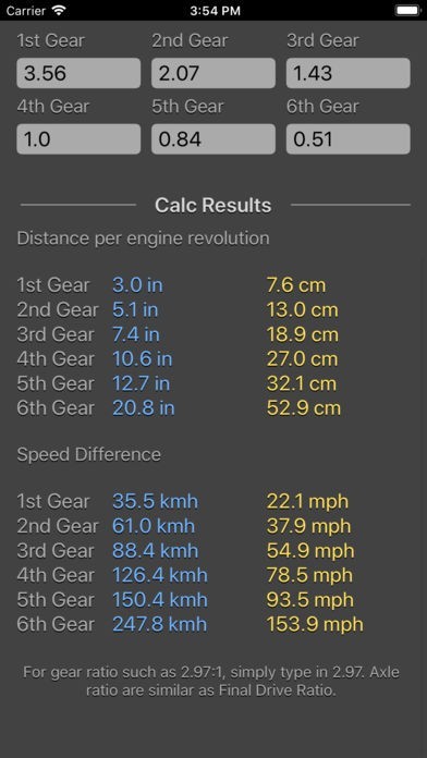単に送信、ディファレンシャルギア比、タイヤサイズは、特定の車両、特定のエンジン回転数とギヤの速度を算出することができます。