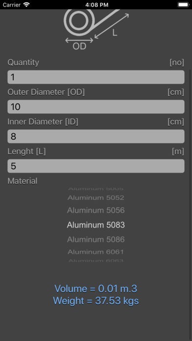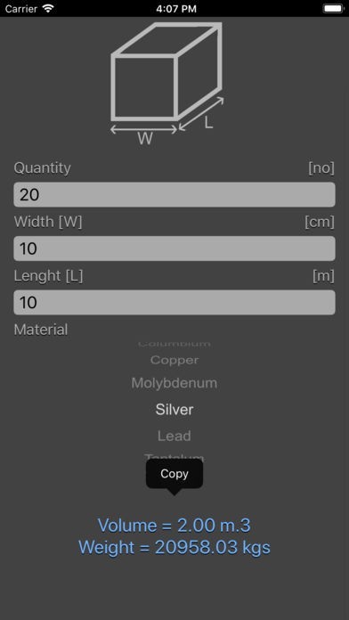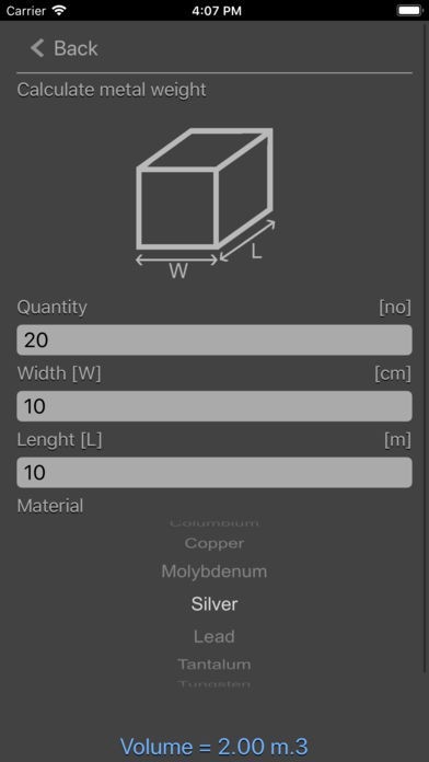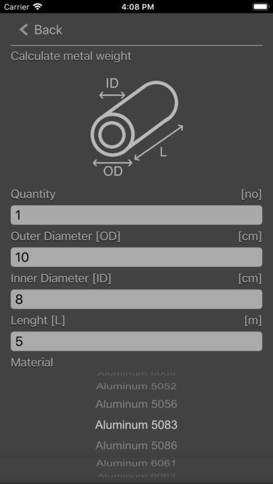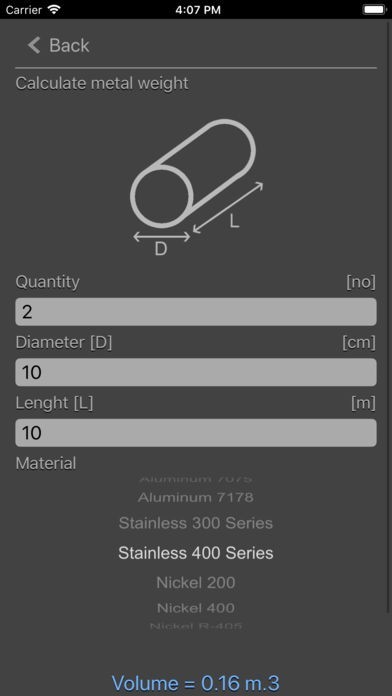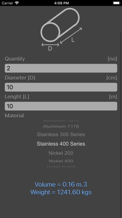 App Storeより引用メタル電卓は、金属の重量と形状を計算することができます。