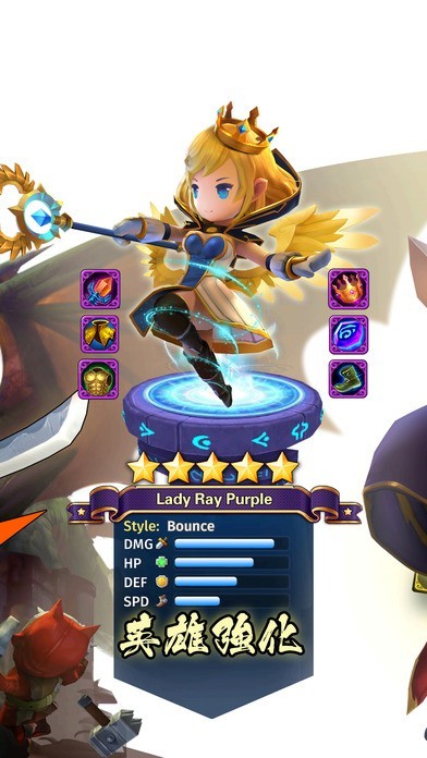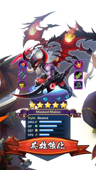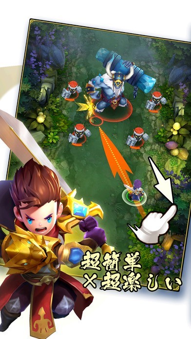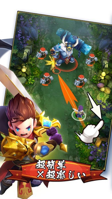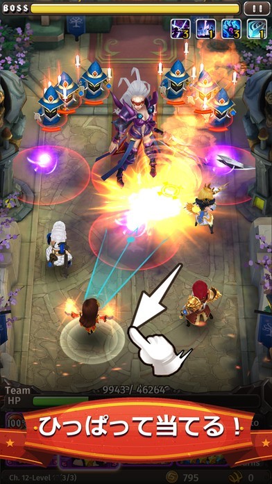 指先で引っ張って当てれば爽快コンボが発生!レベルアップしたヒーローは上級クラスに昇格可能!