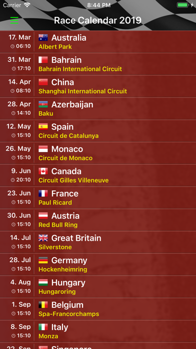 いつレースが行われるのか調べることができる、Race Calendar 2019