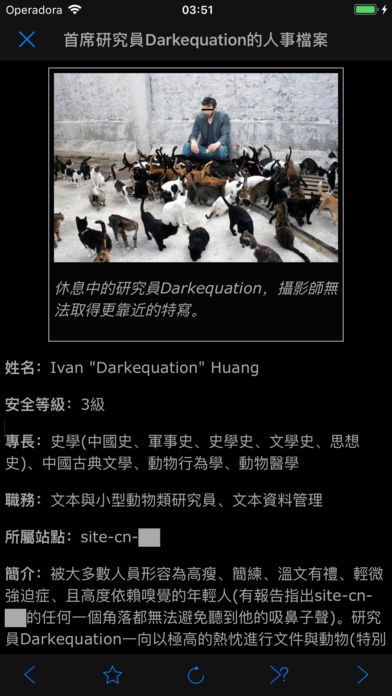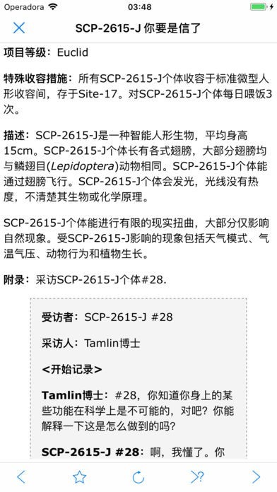 App Storeより引用SCP基金会离线数据库 nn5n - SCP基金会是一个有关于各种超自然现象、个体、地点等等的系列作品。这个App为非官方的SCP基金会离线数据库,让你可以不用联网就能阅读其中的内容。