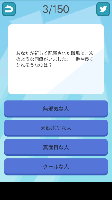 4択の質問が多数収録されており、色々な観点から診断してくれる