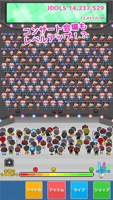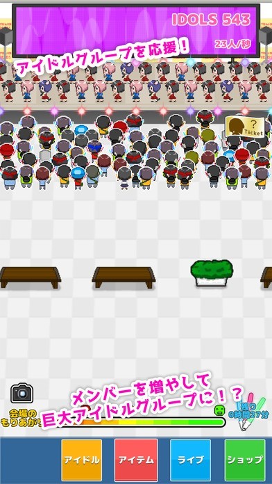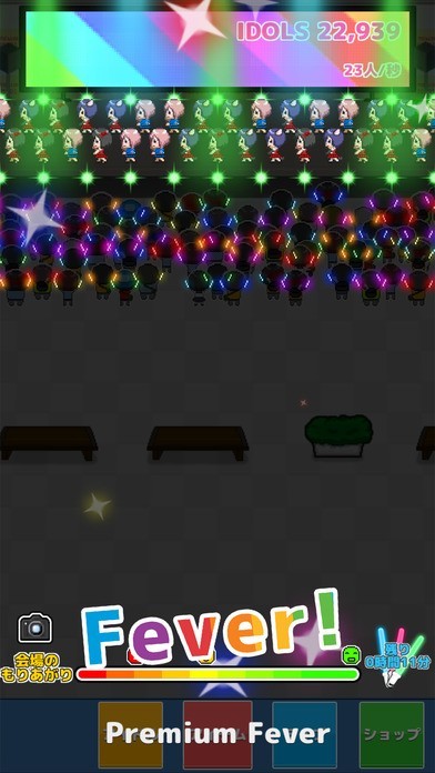 タップすることでアイドルを応援してメンバーを増やし、大きなステージ、新しい曲を開放していくタップアクションゲーム!