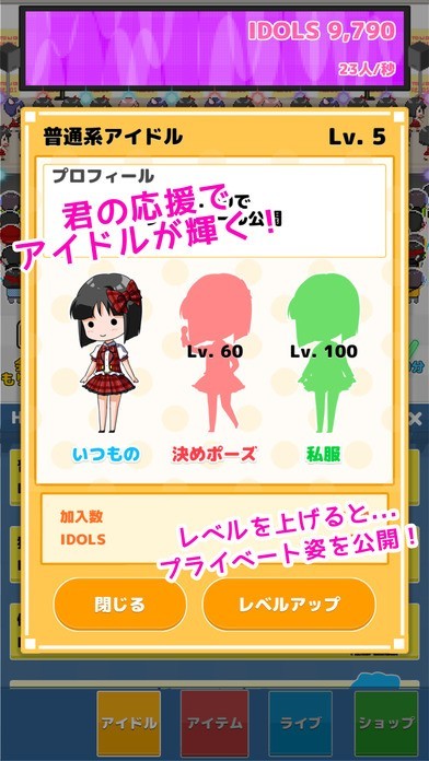 シンプルな操作でアイドルを応援して育てていくタップアクションゲーム!