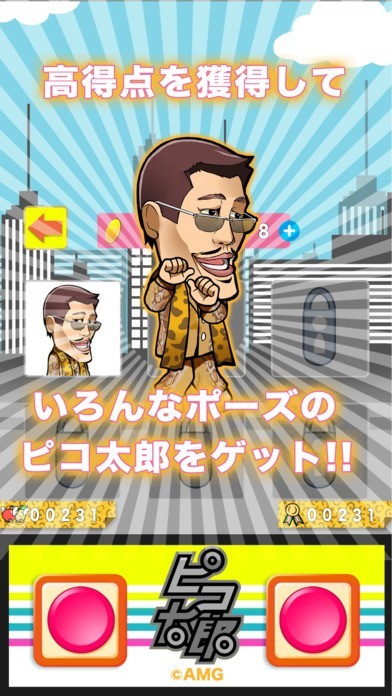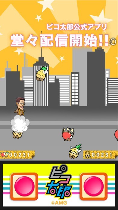 PPAPで世界的な人気を博したピコ太郎が主人公の公式ゲームアプリが登場! 「ピコ太郎 PPAP ラン!」は、手軽に遊べるジャンプアクションゲームです。 障害物として次々とステージに投げ入れられるアップルとパイナップルを、ペンで貫きながら進んでいきましょう。 タップ連打することで右に進み、ジャンプボタンをタップするとジャンプで障害物を避けることができます。 コレクション機能も充実。ゲーム中に聞くことができる面白ボイスや、プレイによって登場する新衣装を集めてみてはいかがでしょうか。