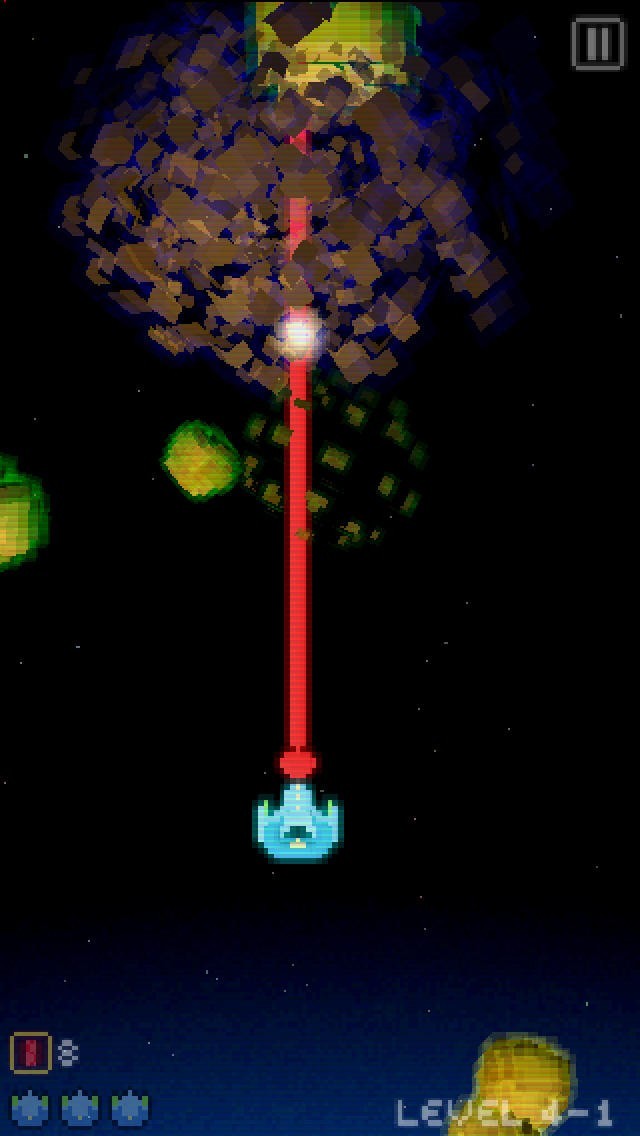 Control is ultra simple, just move the spaceship in space with one finger, and auto-fire on the invaders. Collect power-up to obtain new weapons and lives, make your way through asteroid fields and collect power-up that suddenly switches to a 3D space mode.