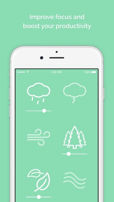 "Noisli"は、BGMとして自然に馴染む環境音を聴くことで、作業に集中したり、リラックス効果を得ることができるアプリです。一般的な楽曲などをBGMとして利用すると、音が気になって仕事に集中しにくかったり、中々落ち着いて休めないと言った場合にも、雨音や風、波音など癒される環境音を豊富に収録した本アプリはぴったりと言えます。